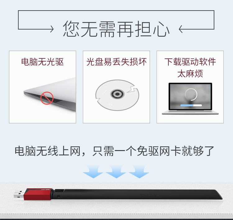 商品名称:TP-LINK TL-WN726N免驱版 USB无线网卡 笔记本台式机通用随身wifi接收器 外置天线 智能安装