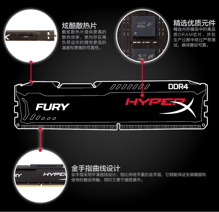 金士顿 FURY DDR4 骇客神条具有出色的性价比优势,能够让您轻松体验新一代DDR4内存的澎湃动力!这款产品能与Intel Core i7 高规格CPU和X99芯片组出色的兼容,并可让这些前沿产品充分发挥出性能潜力。