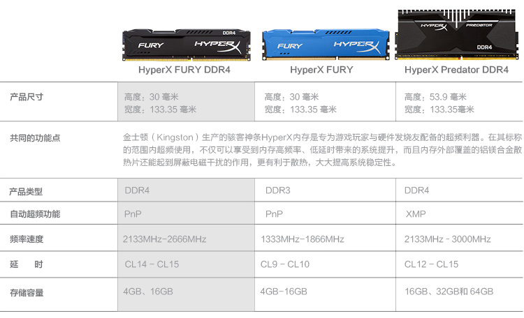 商品名称:金士顿16G-3200 骇客新品野兽