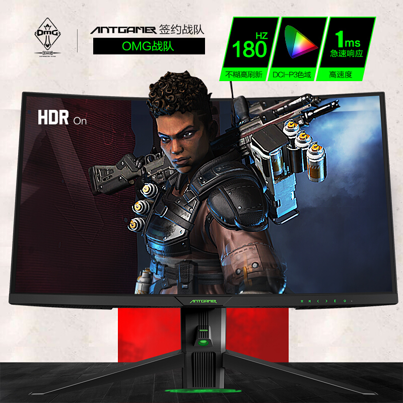 HKC 蚂蚁电竞ANT32VQC 32英寸曲面电竞hdmi显示器吃鸡游戏200hz升降网吧家用液晶电脑1080p宽屏幕壁挂全境封锁2